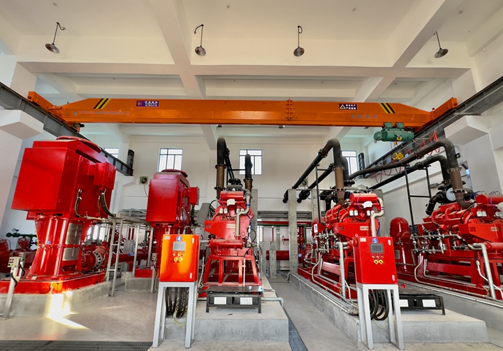 據(jù)悉,本次油品碼頭項目在公用工作樓設(shè)置了“三常三備”消防泵組,即三臺常用的電動消防泵和三臺備用的柴油消防泵,通過架設(shè)在公共管廊上聯(lián)通公用工作樓消防泵房和碼頭泊位的消防炮塔的消防管道,為博賀新港區(qū)東區(qū)13個液體化工品碼頭提供消防海水,這是整個港區(qū)東區(qū)消防系統(tǒng)的核心組成部分,對保障碼頭的安全生產(chǎn)運營的有著重大意義。電動消防泵和柴油消防泵兩個重要消防設(shè)備均采用 UL/FM 雙認證企業(yè)的產(chǎn)品,其產(chǎn)品技術(shù)水平和認證參數(shù)范圍,在國內(nèi)乃至全球同行中均處于領(lǐng)先水平。該消防泵采用了10KV高壓供電,功率達到800KW,多級離心長軸的結(jié)構(gòu)使得整個泵組高度達17米、重量達10噸。矗立在碼頭前沿的兩座高達17米的消防炮塔,同時擁有電動消防水炮和電動泡沫炮,具備就地操控、無線操控和消防控制室操控三種操控方式,并且炮塔的噴射半徑達100米,足以應(yīng)付海上出現(xiàn)的各種險情。 在單機試運行前,油品碼頭黨支部充分發(fā)揮項目一線戰(zhàn)斗堡壘作用,組織業(yè)主單位生產(chǎn)部、施工單位、監(jiān)理單位、設(shè)備廠家對機泵設(shè)備單機試運行方案進行了數(shù)輪嚴格的會審,研究討論了方案內(nèi)容存在的問題并提出了修改意見和建議,并對方案中涉及到的重點工作、具體事項進行了安排。