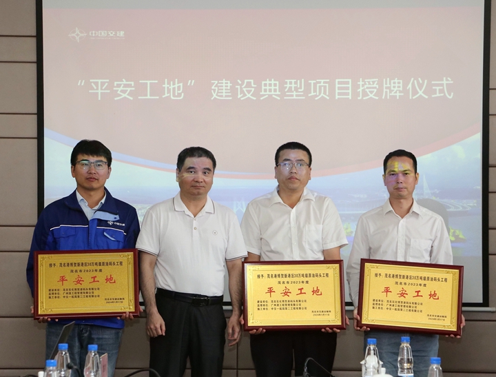 4月12日,茂名市交通運(yùn)輸局召開(kāi)全市公路水運(yùn)工程平安工地建設(shè)交流現(xiàn)場(chǎng)會(huì),總結(jié)2023年全市公路水運(yùn)工程平安工地建設(shè)工作,交流平安工地建設(shè)的經(jīng)驗(yàn)和體會(huì)。茂名市交通運(yùn)輸局總工程師張武出席會(huì)議并對(duì)獲評(píng)2023年度市級(jí)“平安工地”的3個(gè)典型項(xiàng)目和“平安衛(wèi)士”的19名同志進(jìn)行表彰。茂名港博賀新港區(qū)30萬(wàn)噸級(jí)原油碼頭項(xiàng)目榮獲平安工地建設(shè)典型項(xiàng)目,項(xiàng)目經(jīng)理梁祖釗榮獲茂名市交通建設(shè)工程“平安衛(wèi)士”稱(chēng)號(hào)。