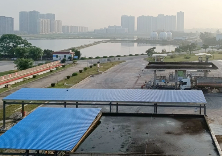 據(jù)悉,2#油庫卸車臺(tái)露天雨棚的搭建,旨在保護(hù)卸車作業(yè)免受惡劣天氣影響,確保油品在裝卸過程中的質(zhì)量與安全。雨棚的建成不僅為作業(yè)人員提供了良好的工作環(huán)境,也有效減少了雨水對油品質(zhì)量的影響和對生產(chǎn)設(shè)備的潛在損耗;同時(shí)兼顧美觀性,使之成為庫區(qū)一道亮麗的風(fēng)景線。
